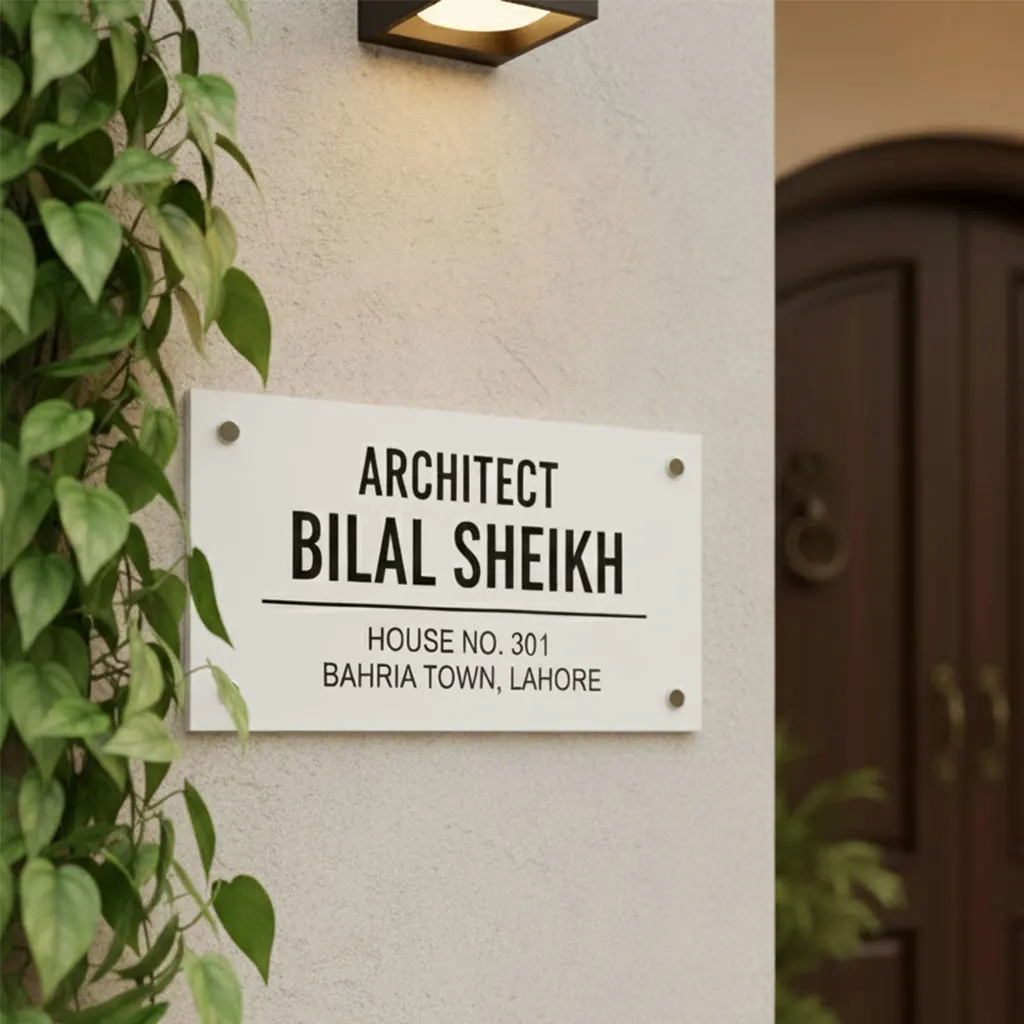 Made with high-resistance materials like acrylic, aluminum, or composite metal, this plate is built to handle Pakistan’s extreme weather — from heavy rain and dust to harsh sunlight. The printing or engraving technology keeps the text crisp and readable without fading or peeling.