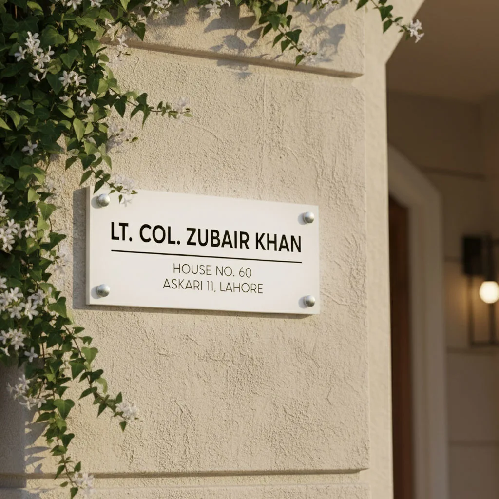 Perfect for villas, bungalows, and luxury residences, this name plate helps visitors, guests, and delivery services identify your property with ease while adding sophistication to your entrance. Installation is simple and secure — mount it on your gate, wall, or front porch using screws or strong adhesive tape.